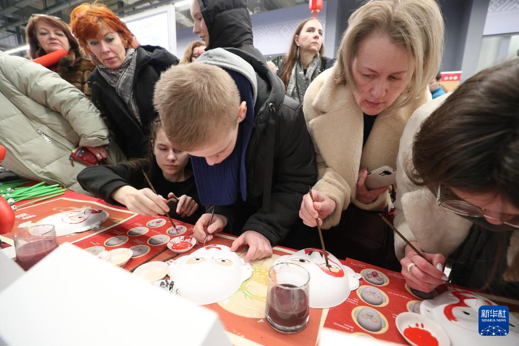 2月14日,在俄罗斯圣彼得堡,当地民众体验剪纸。新华社发(莫京娜摄)