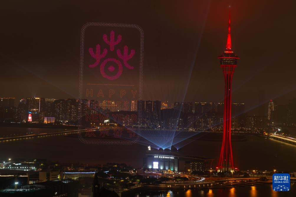 澳门举行“金骏云翔 欢乐春节”2026无人机烟花汇演