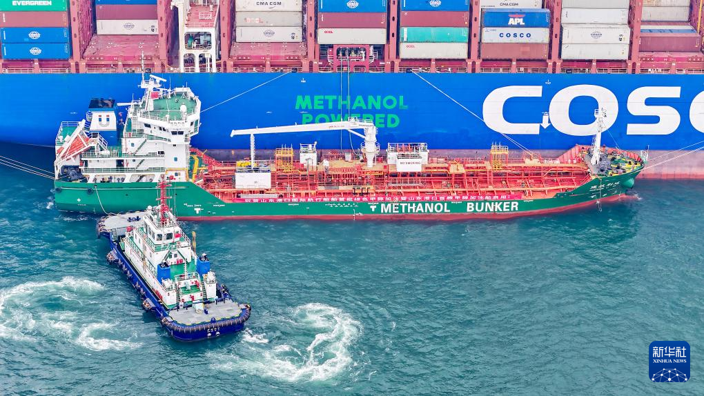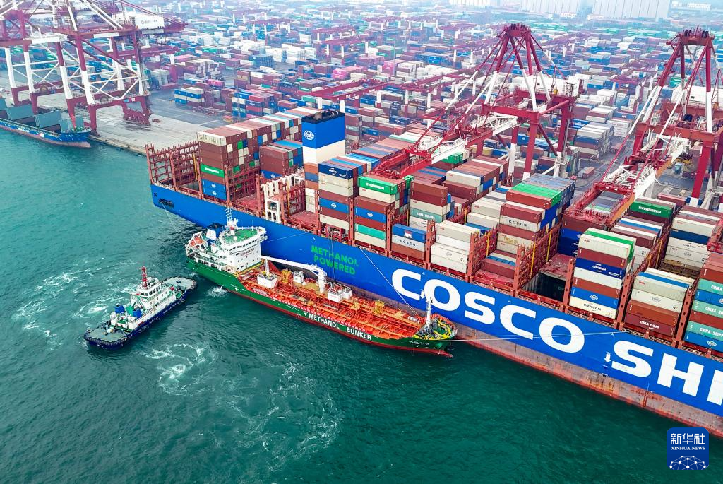 山东港口青岛港完成首批绿色甲醇“船对船”加注