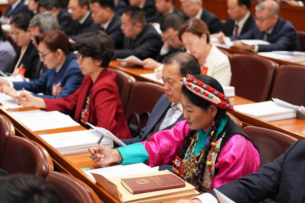 3月5日,全国人大代表次仁措姆出席十四届全国人大四次会议开幕会。新华社记者 邢广利 摄