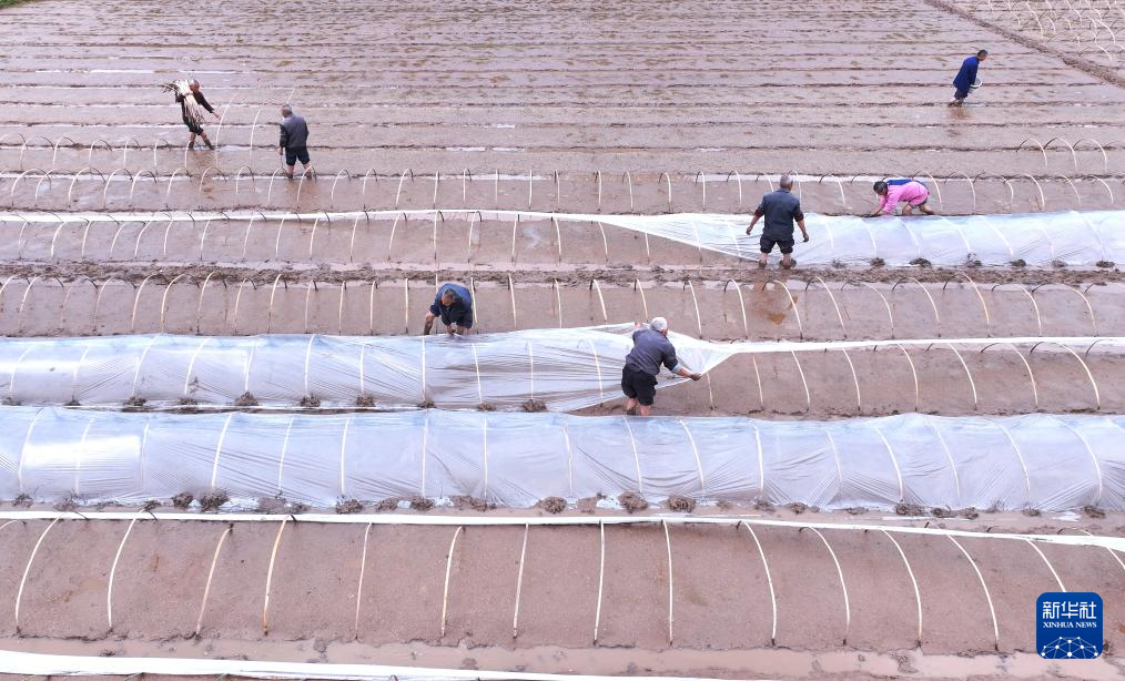 3月31日,村民在四川省眉山市仁寿县板桥镇青龙社区进行水稻集中育秧(无人机照片)。新华社发(潘建勇摄)