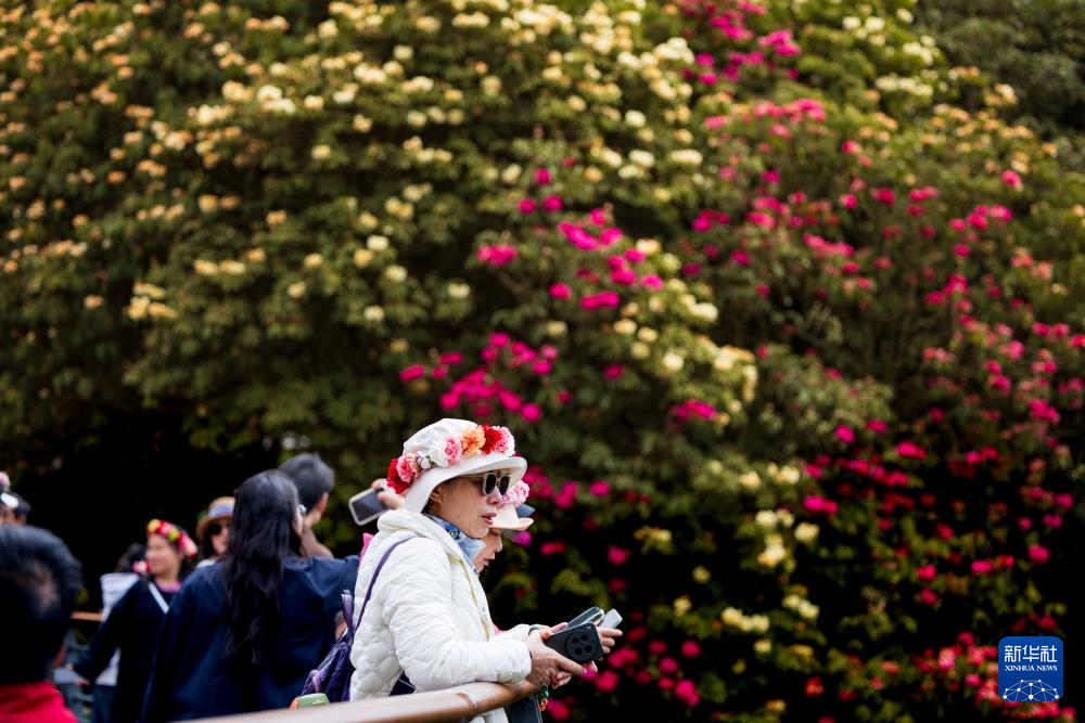 4月1日,游客在百里杜鹃管理区金坡景区赏花观光。新华社记者 杨文斌 摄