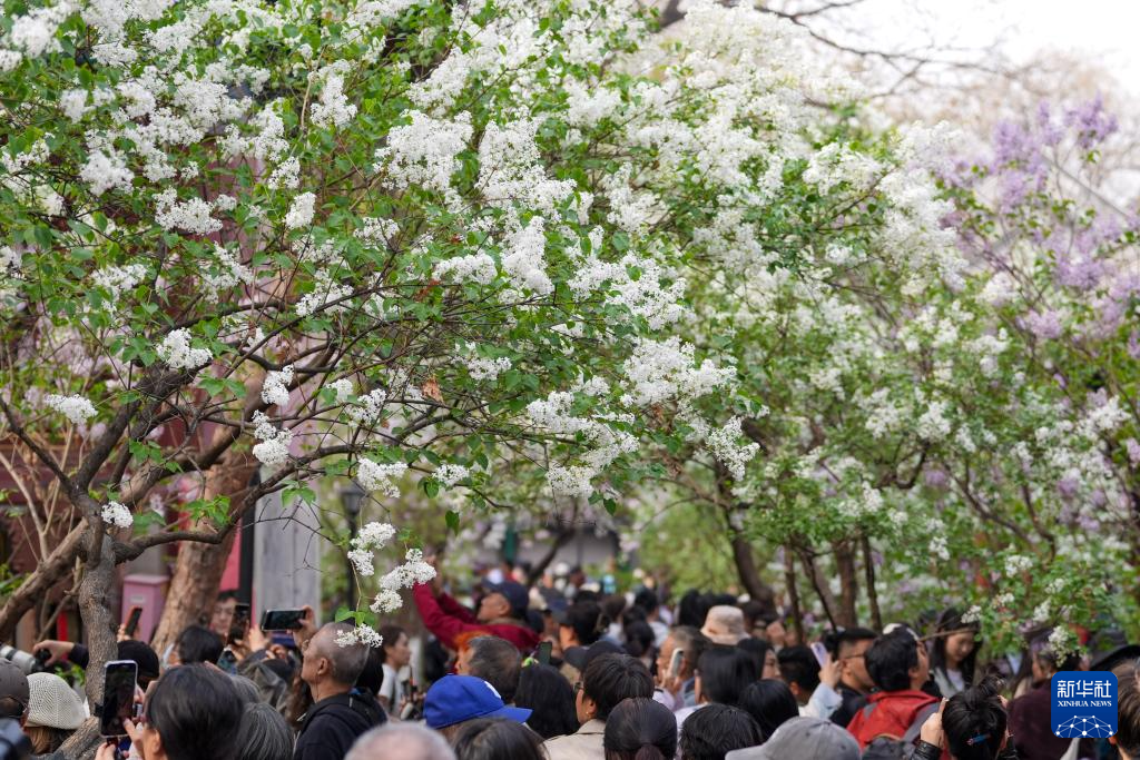 4月2日,游客在北京法源寺内观赏丁香花。新华社记者 谢晗 摄