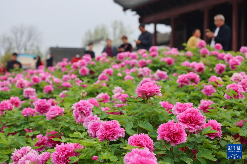 4月2日,游客在河南省驻马店市汝南县天中山文化园观赏牡丹。新华社发(张萌摄)