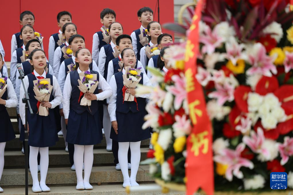 4月3日,少先队员在活动现场合唱《我们是共产主义接班人》。