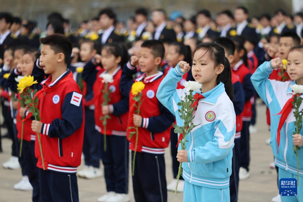 4月3日拍摄的天津市青少年清明祭英烈主题团(队)日活动现场。