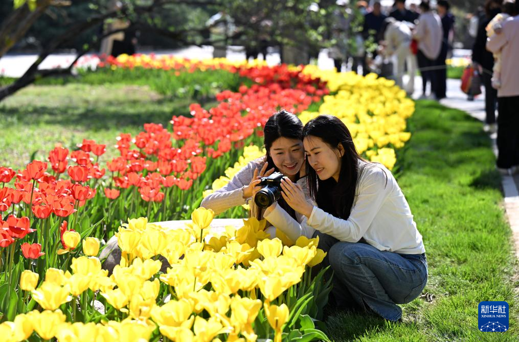 4月4日,游客在河北省石家庄市植物园赏花游玩。新华社发(陈其保摄)