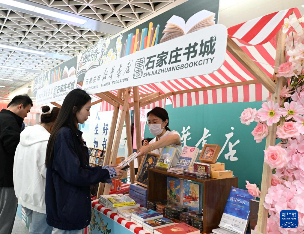 4月19日,市民在河北省石家庄市图书馆全民阅读主题活动现场挑选书籍。新华社发(陈其保摄)