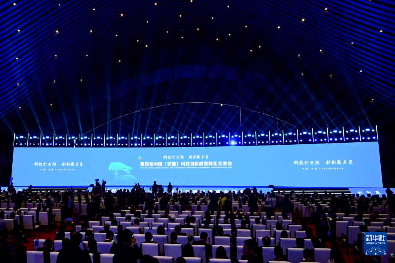 4月26日拍摄的第四届中国(安徽)科技创新成果转化交易会开幕式现场。新华社记者 周牧 摄