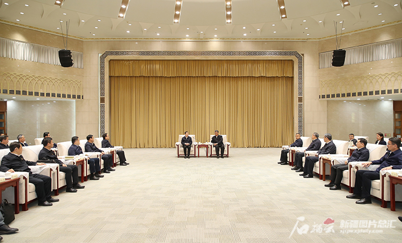 10月21日至22日,山东省委副书记、省长周乃翔率山东省党政代表团来新疆考察对接对口支援工作。这是10月21日,自治区党委书记、新疆生产建设兵团党委第一书记、第一政委马兴瑞,自治区党委副书记、自治区主席艾尔肯·吐尼亚孜在乌鲁木齐会见代表团一行。天山网-新疆日报记者 崔志坚摄