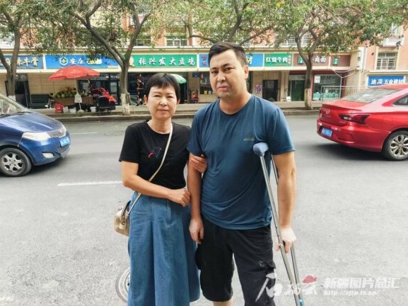 8月29日,乌鲁木齐市天山区红十字会常务副会长陈冬梅(左)与阿布都拉·艾热提合影。石榴云/新疆日报记者 于熙 摄