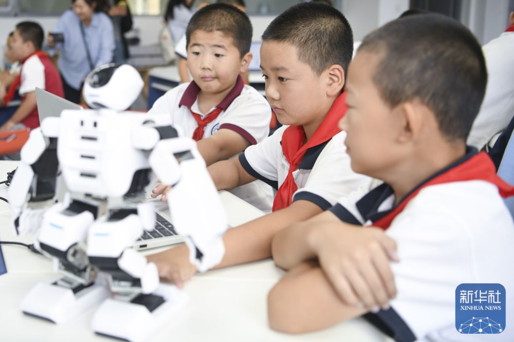 ↑9月4日,新疆生产建设兵团第二师铁门关市华山二中的学生练习机器人编程。