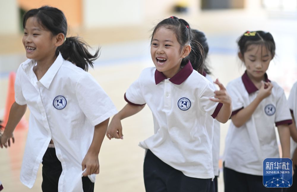 ↑9月4日,新疆生产建设兵团第二师铁门关市华山二中的学生在学校体育馆上体育课。