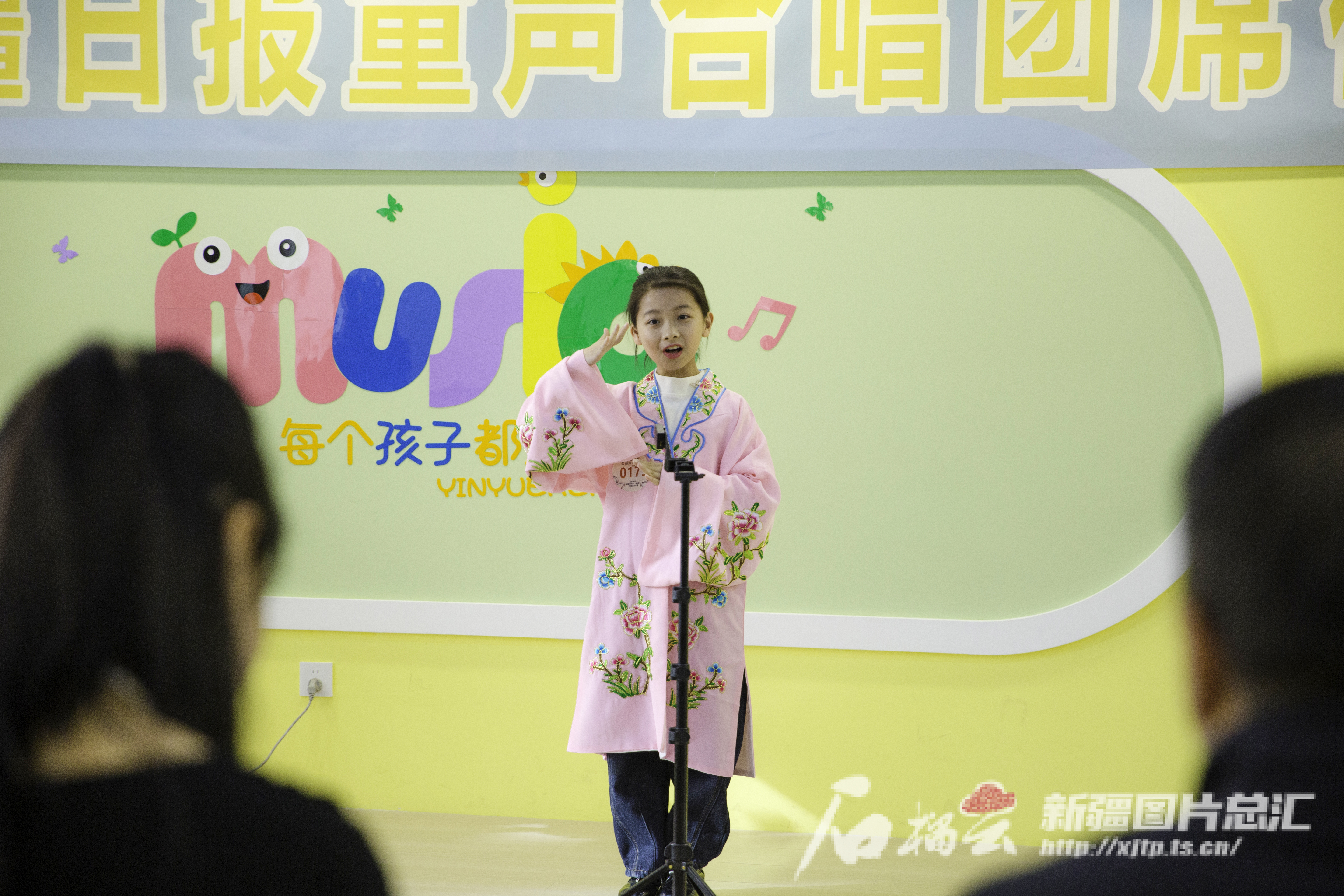 11月10日,新疆报业集团石榴云艺术团,现场进行唱歌比赛的小选手。石榴云/新疆日报记者 豆兴军 摄
