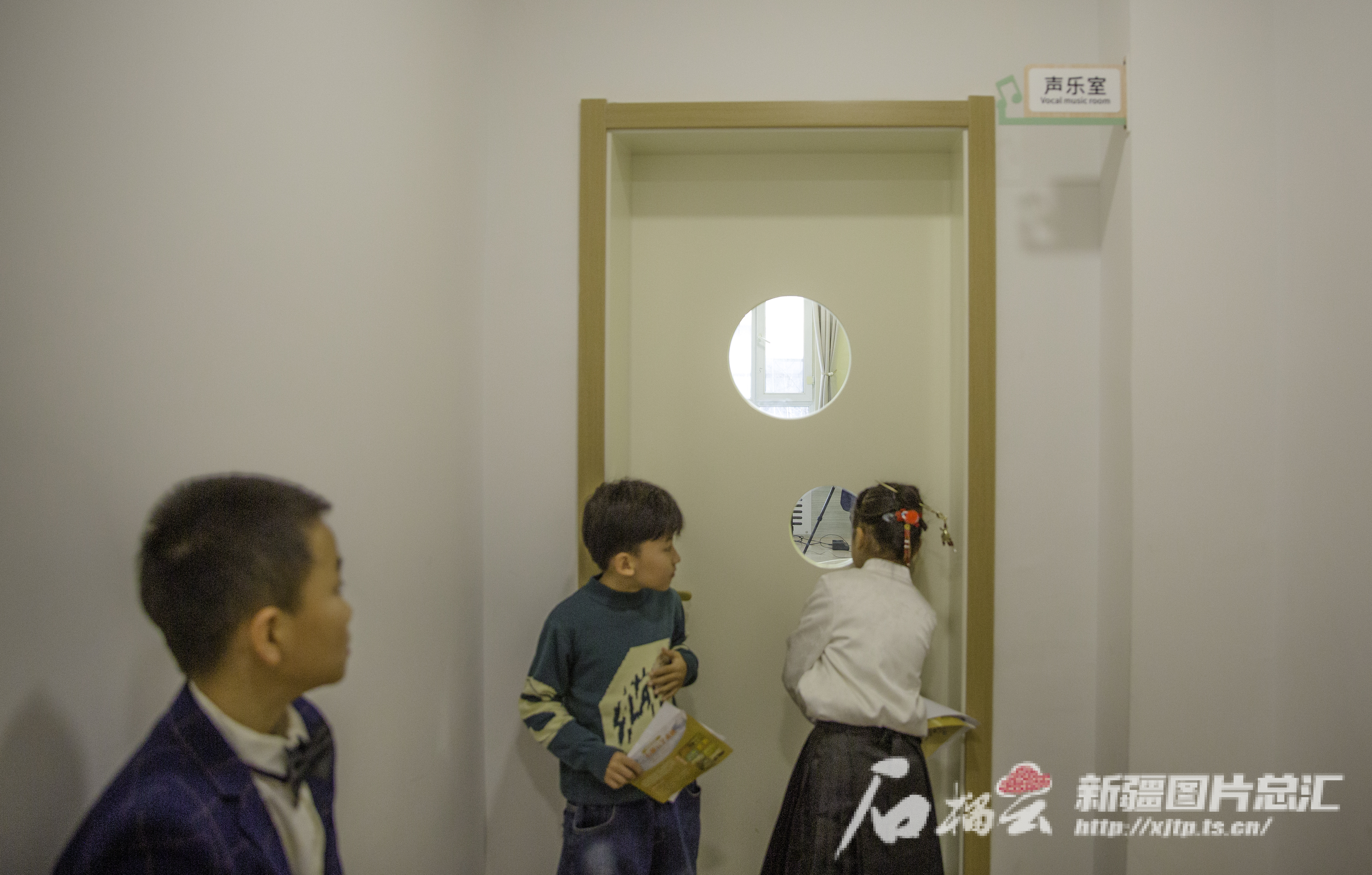 11月10日,在新疆报业集团石榴云艺术团,参加新疆日报公益童声合唱团的小选手们排队等待进场演唱歌曲。石榴云/新疆日报记者 豆兴军 摄