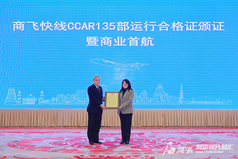 12月30日,中国民航华东地区管理局向中国商飞客服公司颁发中国民航CCAR-135部运行合格证。天山网-新疆日报记者 崔志坚摄