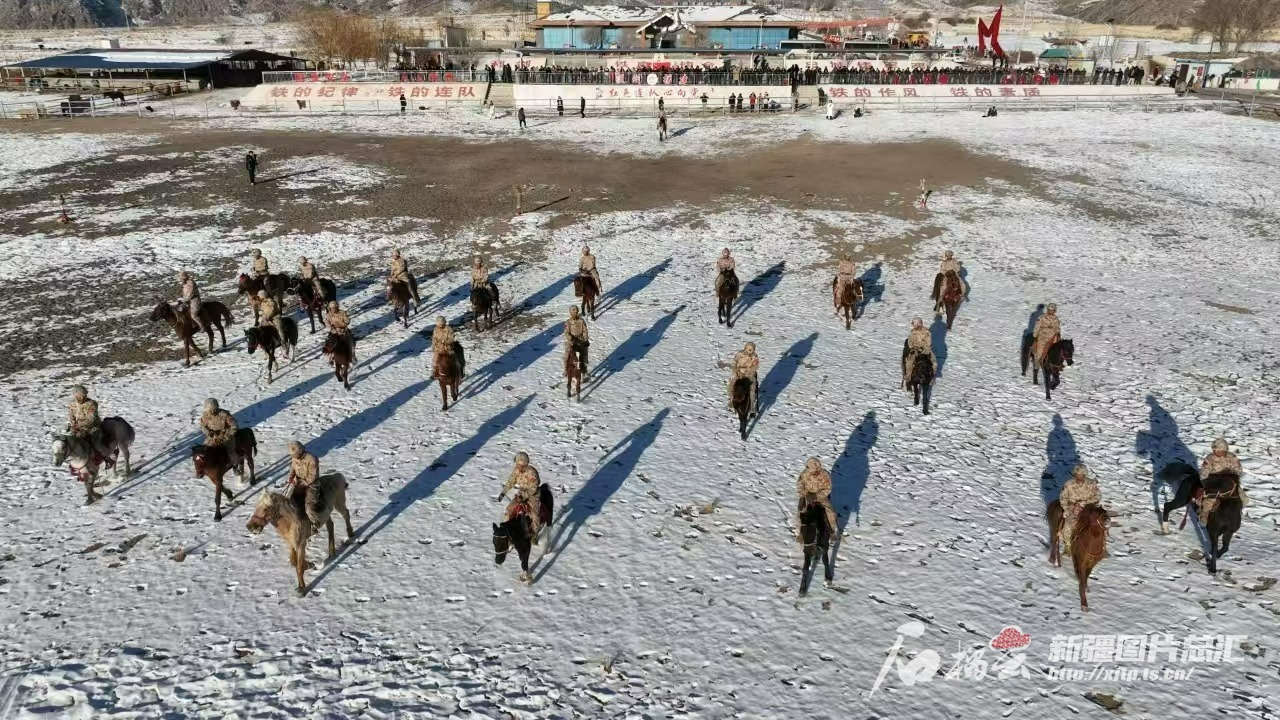 1月17日,在阿克苏地区拜城县老虎台乡,民兵骑兵连在表演马术。邵若龙摄