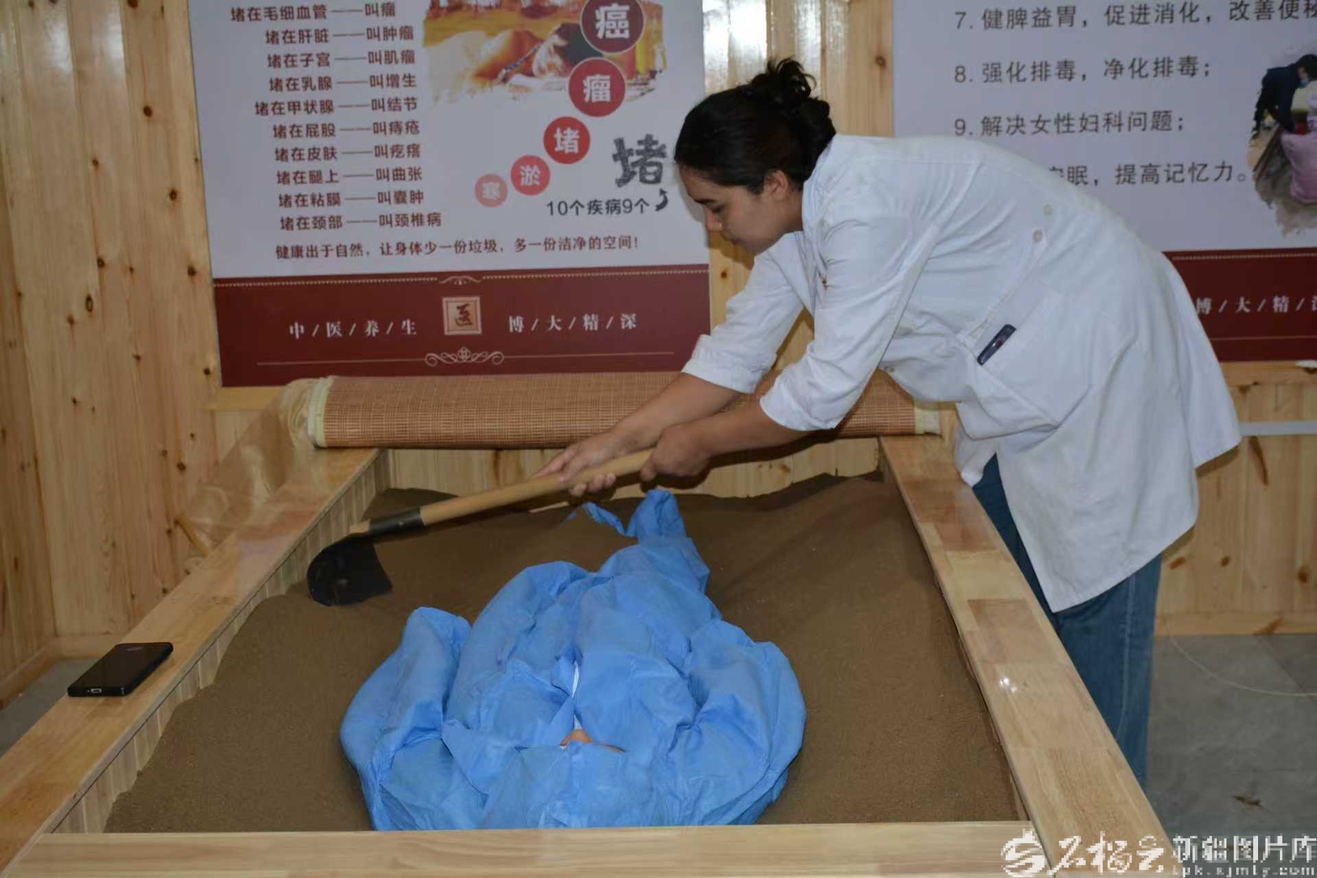 8月中旬以来,沙漠上午气温较低,达不到沙疗要求,许多游客和周边群众选择上午在室内进行15至30分钟的沙疗体验,下午再转至室外。穆合塔尔表示:“室内沙疗不晒不热,免于中暑风险,尤其适合初次体验的游客。”