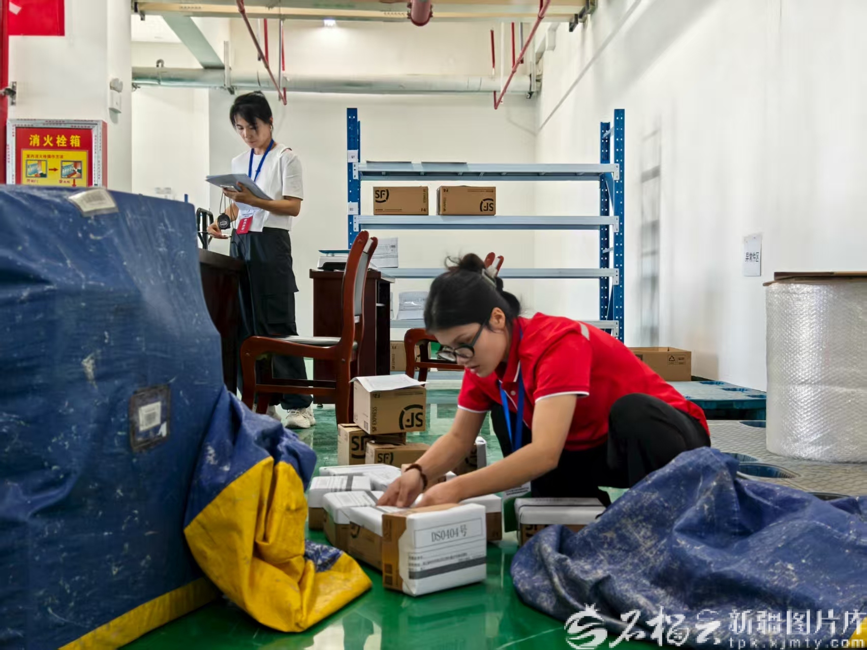 参赛选手古丽洁合热姆·艾海提初分快递并上报信息异常件。石榴云/新疆日报记者 范琼燕摄