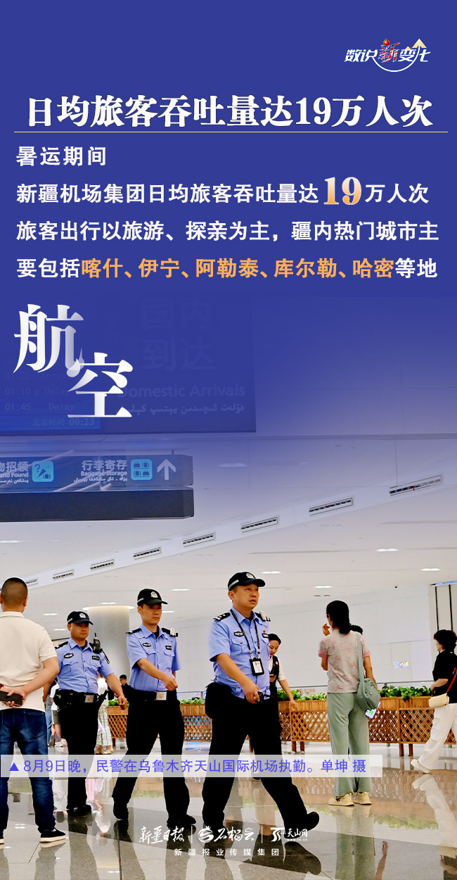 暑运以来,学生流、旅游流、探亲流等客流叠加,新疆进入旅游旺季。为更好满足各族旅客的出行,铁路、民航做了哪些工作?取得了怎样的成绩?今天的《数说“新”变化》一起来了解。