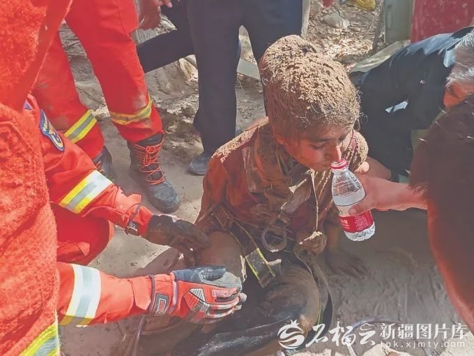 泥人般的布帕太姆·阿布杜喀迪尔被同伴拉出后,瘫坐在地上,勉强喝水漱了漱口问道:“孩子怎么样?”