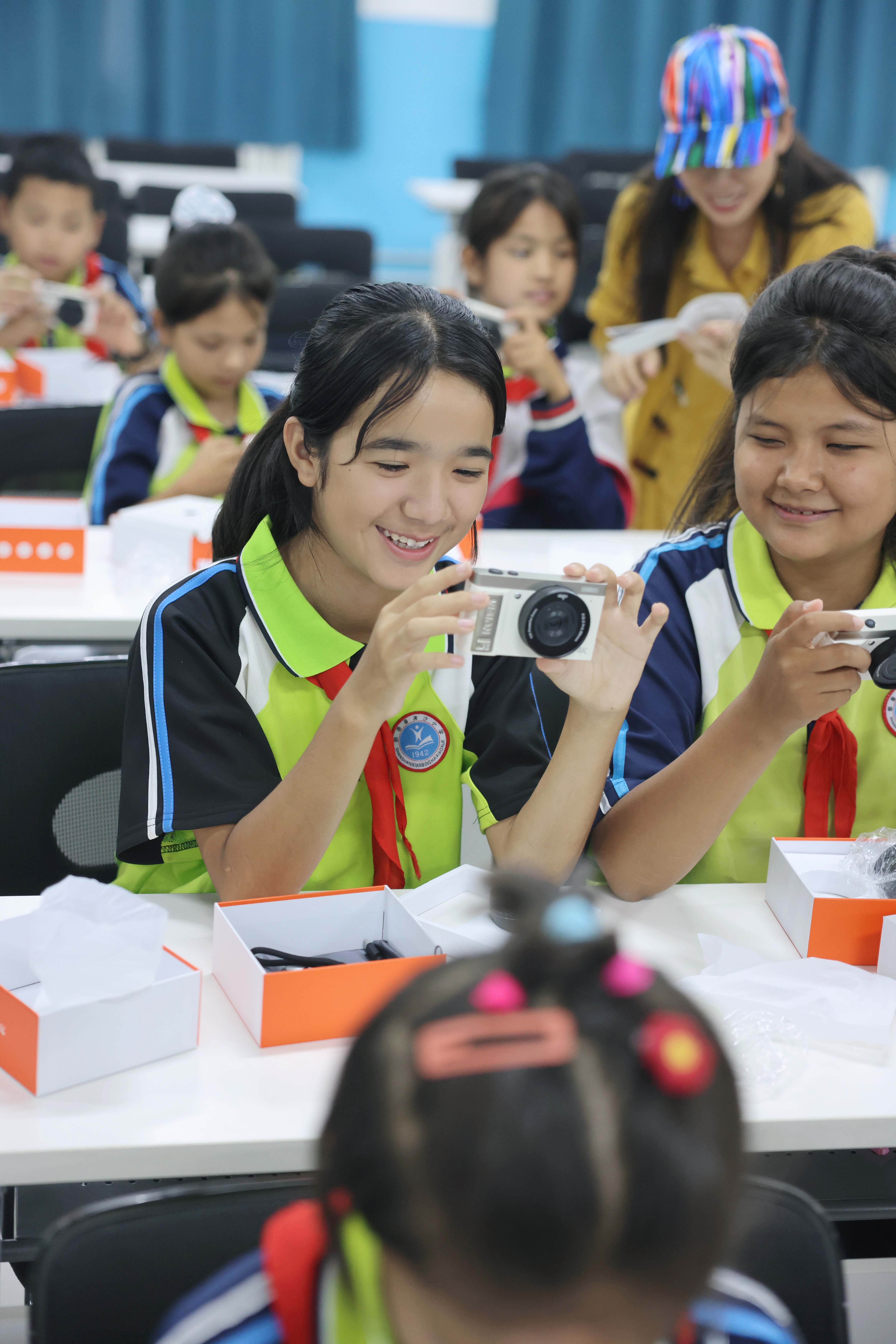 9月3日,在“红石榴·照见计划”摄影美育项目(鄯善站)启动仪式上,28名学生领到了相机与地球仪。王立三 摄