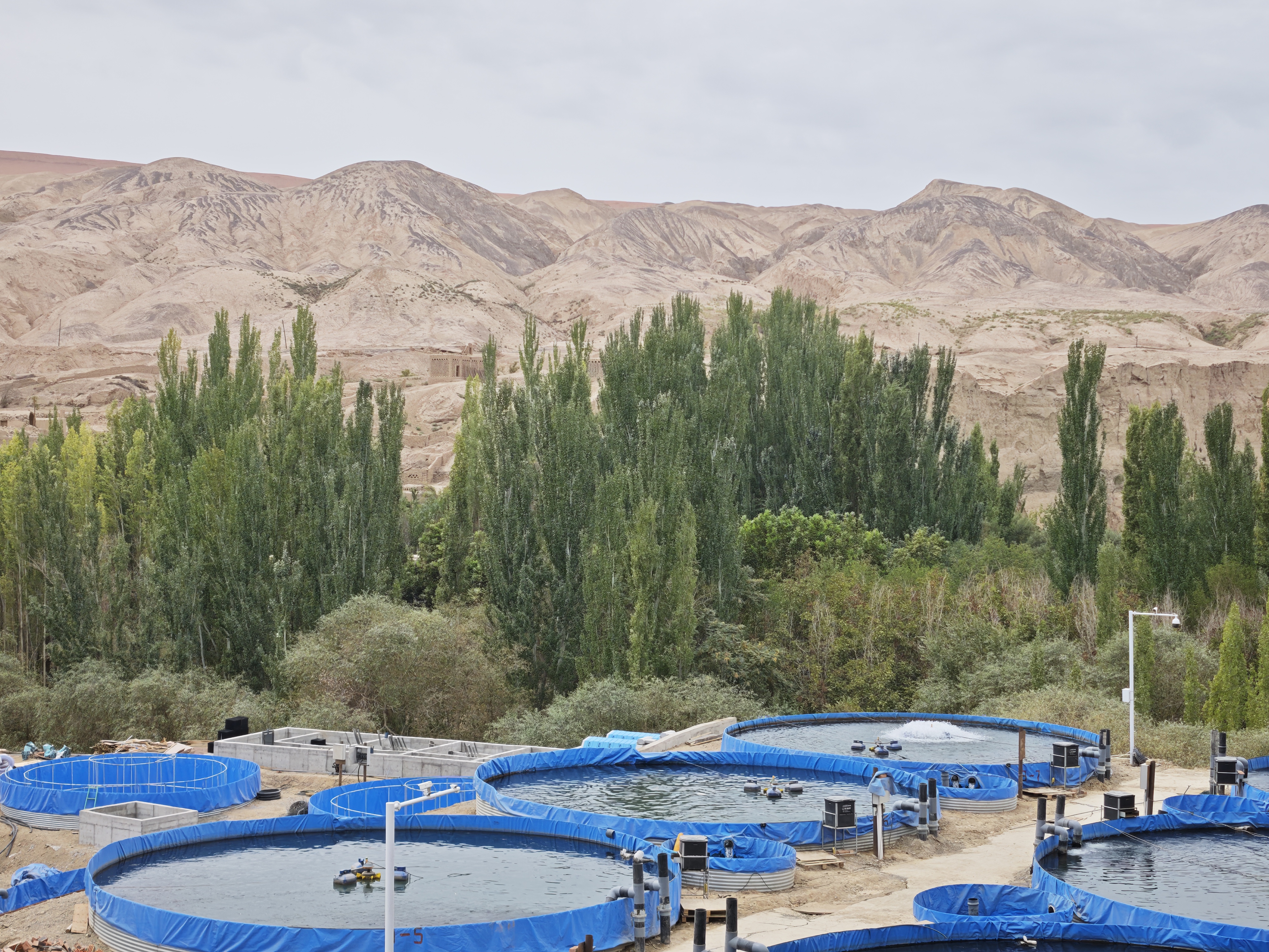 据介绍,陆基过水养殖是指将冷水鱼养殖基地建在山麓与绿洲之间,可利用水流落差形成自流,坎儿井水、泉水流经养殖基地之后,再排往灌溉水渠。“陆基过水养殖模式利用了坎儿井等农业灌溉用水设施,节约了养殖企业成本;同时,养殖冷水鱼后的水中富含氮、磷、钾等元素,有助于增加水的肥力,可促进农作物生长,提高土地产出效益,从而实现一水两用、一水双收。”吐鲁番市新疆火洲坎儿井渔业有限公司副总经理张家志说。