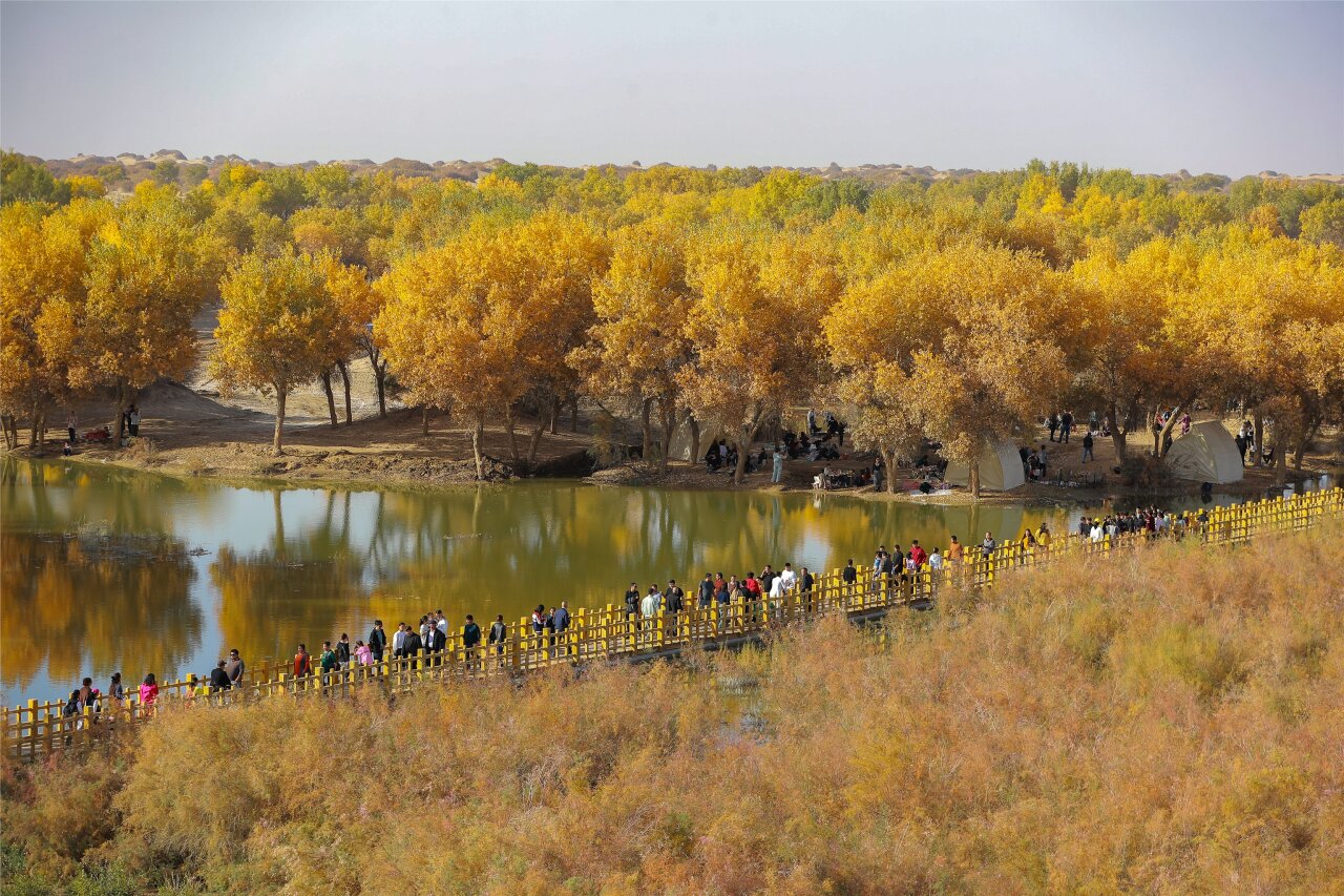 10月18日,新疆和田地区洛浦县第五届“醉美胡杨 魅力洛浦”胡杨季观赏活动在杭桂镇洛滨胡杨林正式启动。当日,来自各地的1万余名游客齐聚于此,在欣赏精彩文艺演出的同时,沉浸式感受胡杨林的秋日魅力。(通讯员:买买提艾力·艾尼瓦尔)