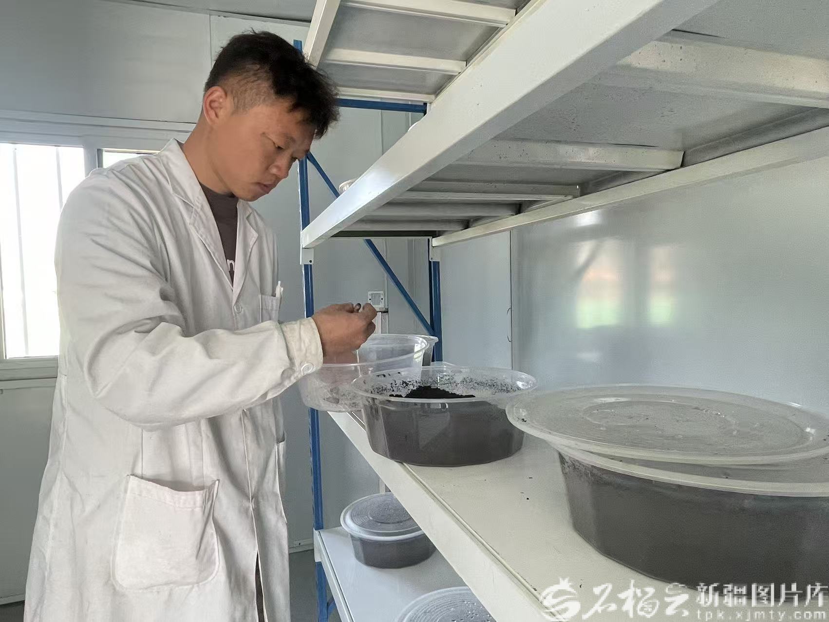 毕勇利是新疆农业大学农学院研究生,已驻扎基地近两年,他参与的这个科研项目是由新疆农业大学农学院马德英教授团队主持的《基于昆虫生物转化的农田残膜回收混合物分离技术研究》。