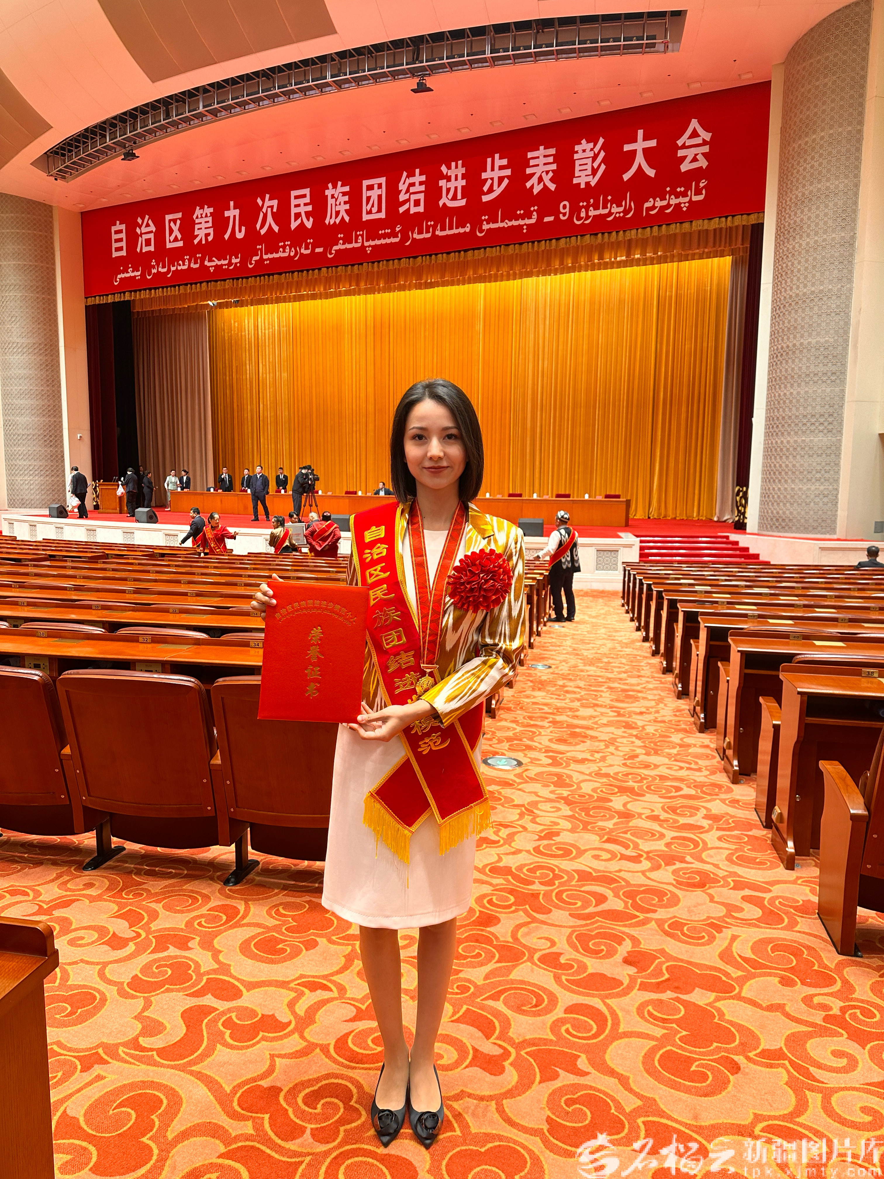 10月16日,帕丽巴克·激浪在自治区第九次民族团结进步表彰大会现场。受访者供图