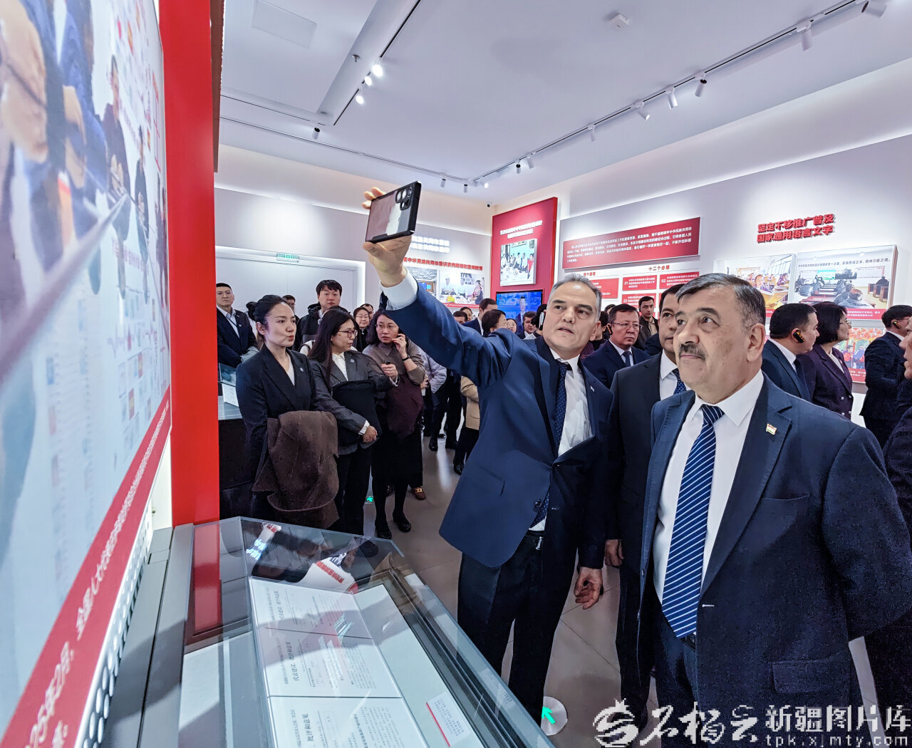 天山网-新疆日报讯(记者周鹏摄影报道)11月5日,参加第十二届中国—中亚合作论坛的多国代表团嘉宾走进新疆维吾尔自治区成立70周年主题成就展现场,通过丰富的实物展品、翔实的数据图表及生动的影像资料,沉浸式感受新疆70年来的沧桑巨变,为深化合作注入新共识。