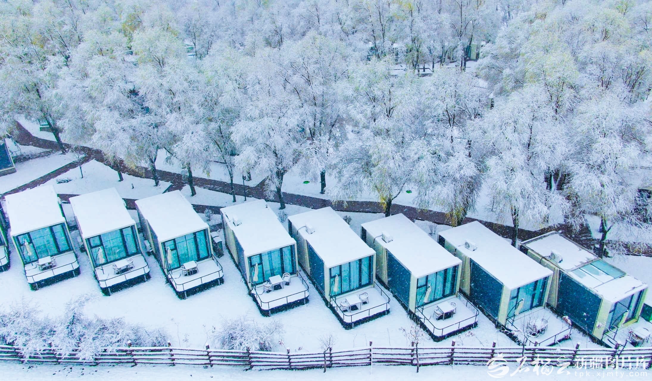 那拉提景区在大雪中呈现出水墨画般的景致(11月5日无人机摄)。张文庭摄