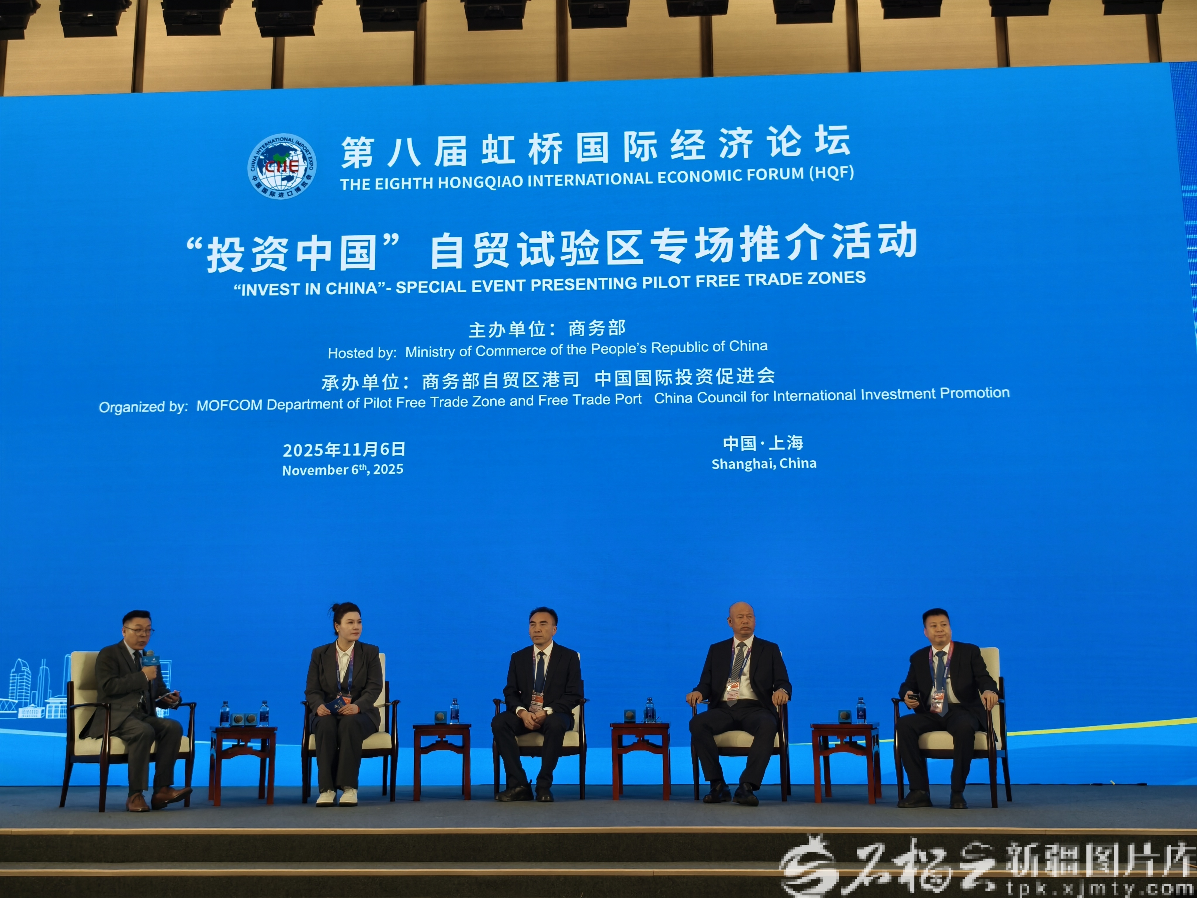 天山网-新疆日报讯(记者黑宏伟报道)11月6日,在第八届中国国际进口博览会举办期间,第八届虹桥国际经济论坛“投资中国”自贸试验区专场推介活动在国家会展中心(上海)举行。中国(新疆)自由贸易试验区与中国(广西)自由贸易试验区、中国(黑龙江)自由贸易试验区等7个西部和沿边自贸试验区一道精彩亮相,通过专场推介全面展现独特优势与发展机遇,诚邀全球投资者共享发展红利。