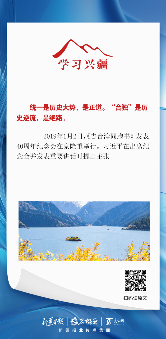 统一是历史大势,是正道。“台独”是历史逆流,是绝路。