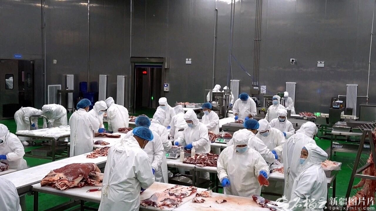 畜牧产业的全链条升级更添发展动能。新疆天羊牧业有限公司通过湖羊与优质品种杂交改良,7.1万只母羊的核心群产羔率不断提升,地暖养殖等科学管理让羔羊成活率保持在98%;新疆冠元牧业有限公司投建3.7万平方米冷链加工基地,日屠宰2000只羊、200头牛的生产线打通“屠宰—加工—冷链—销售”闭环,带动100余名农牧民家门口就业,2025年预计年产值达2亿元。