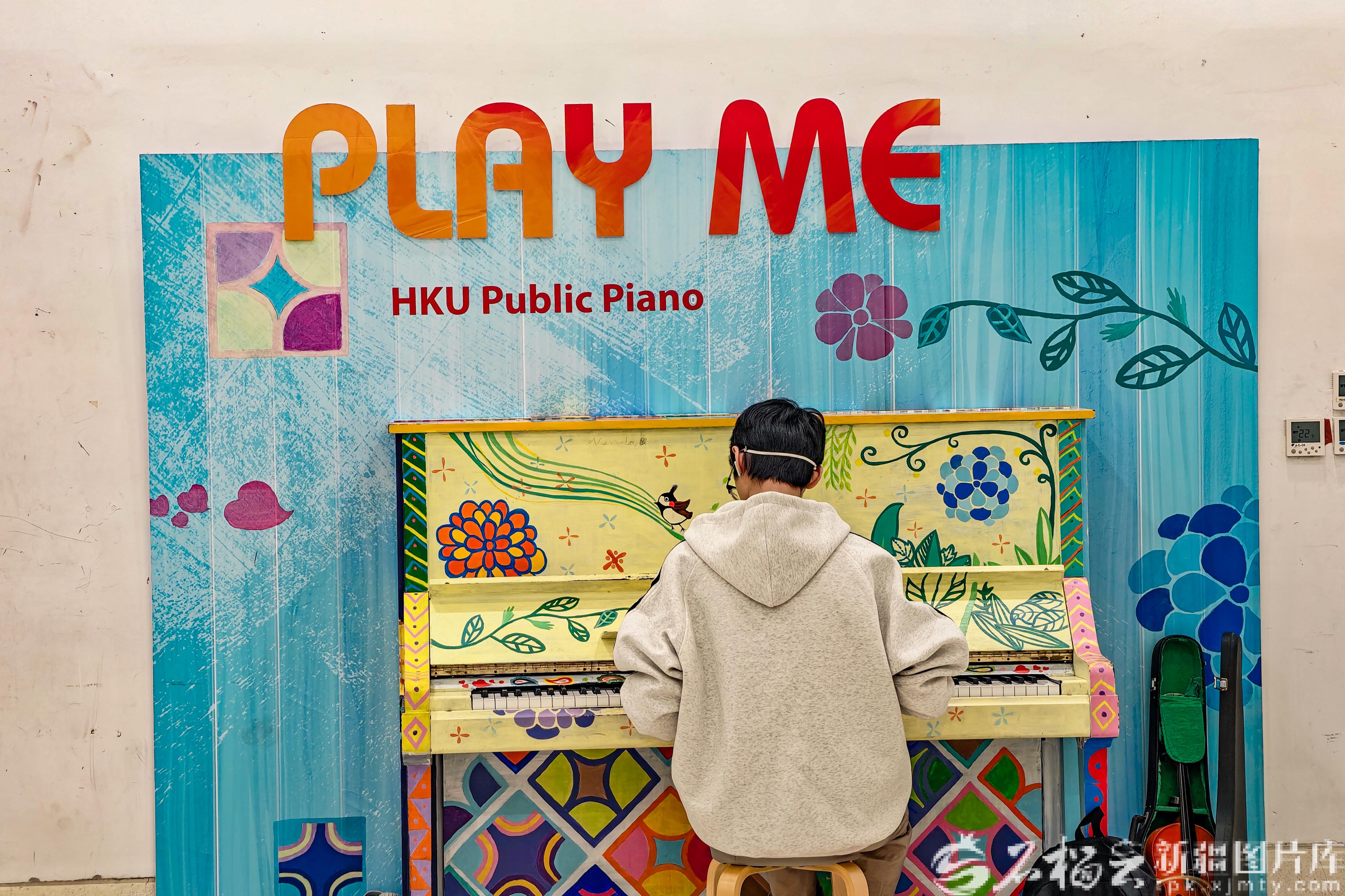 11月4日,一位学生在香港大学校园转角处弹钢琴。