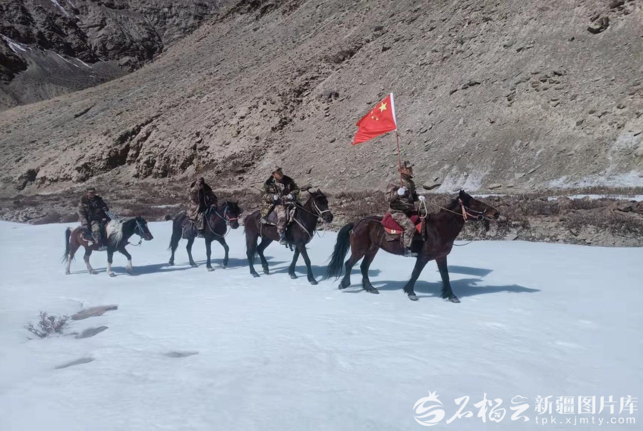 朱马力·哈来西(右一)和队友在巡边(资料图)。秦文哲摄