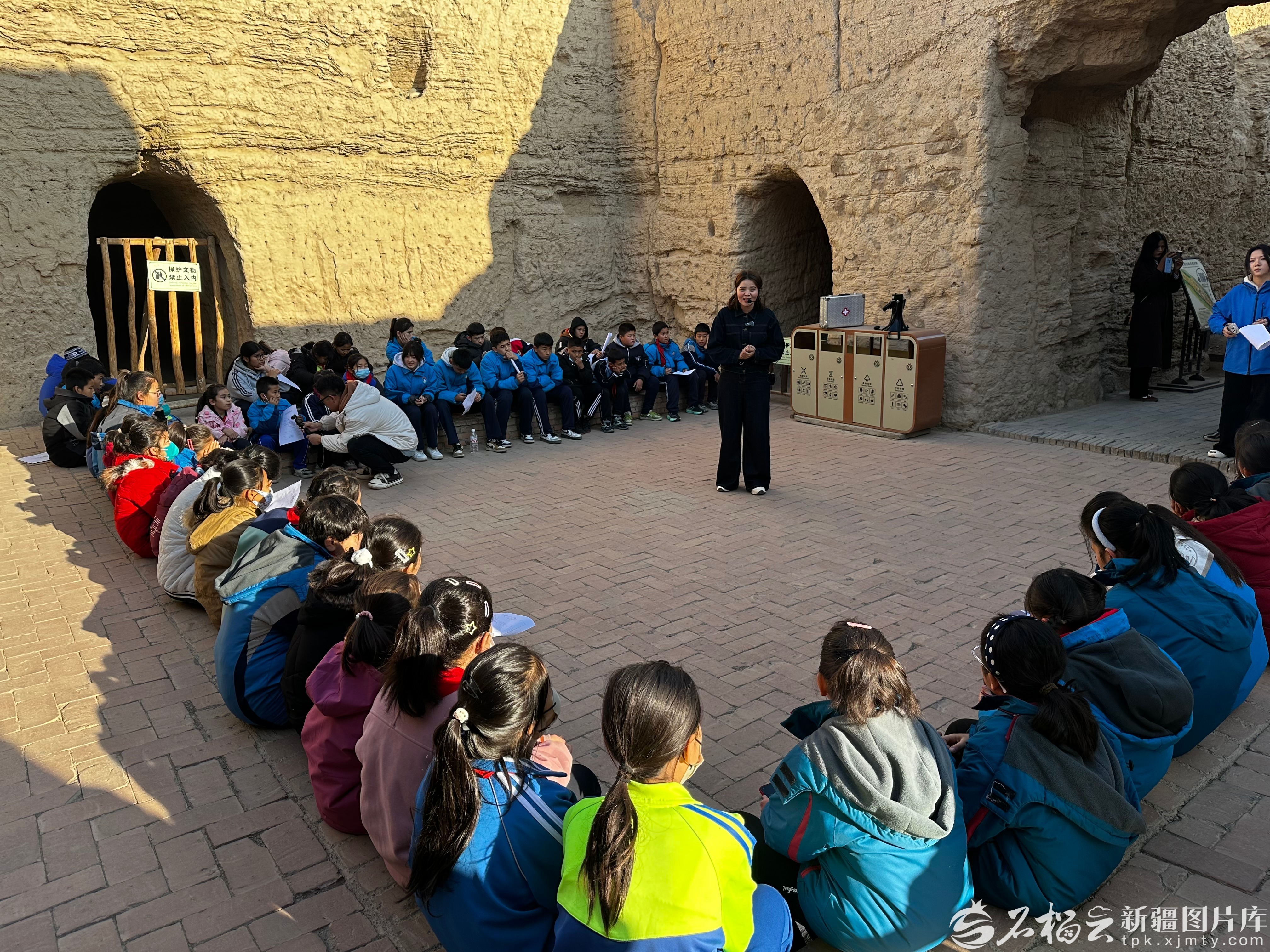 “‘探寻交河历史·铸牢中华民族共同体意识’精品研学线路,是我们专为青少年打造的历史文化研学课堂。”吐鲁番市文物局交河故城文物管理所宣教负责人努尔比娅·阿不力米提介绍,该线路以升国旗、唱国歌,齐声诵读《论语》经典,行拜师礼以及宣誓“强国有我”等文化仪式开场。随后,学生手持任务卡走进遗址核心区,通过背诵与交河相关的古诗词、解读“掏土为室”的建筑智慧等方式,深入了解交河故城的历史底蕴。在雅尔湖石窟,学生可以借助AR设备沉浸式体验千年石窟的艺术魅力。在手工实践环节,学生亲手复刻故城房屋,体验古代工匠的建筑智慧。