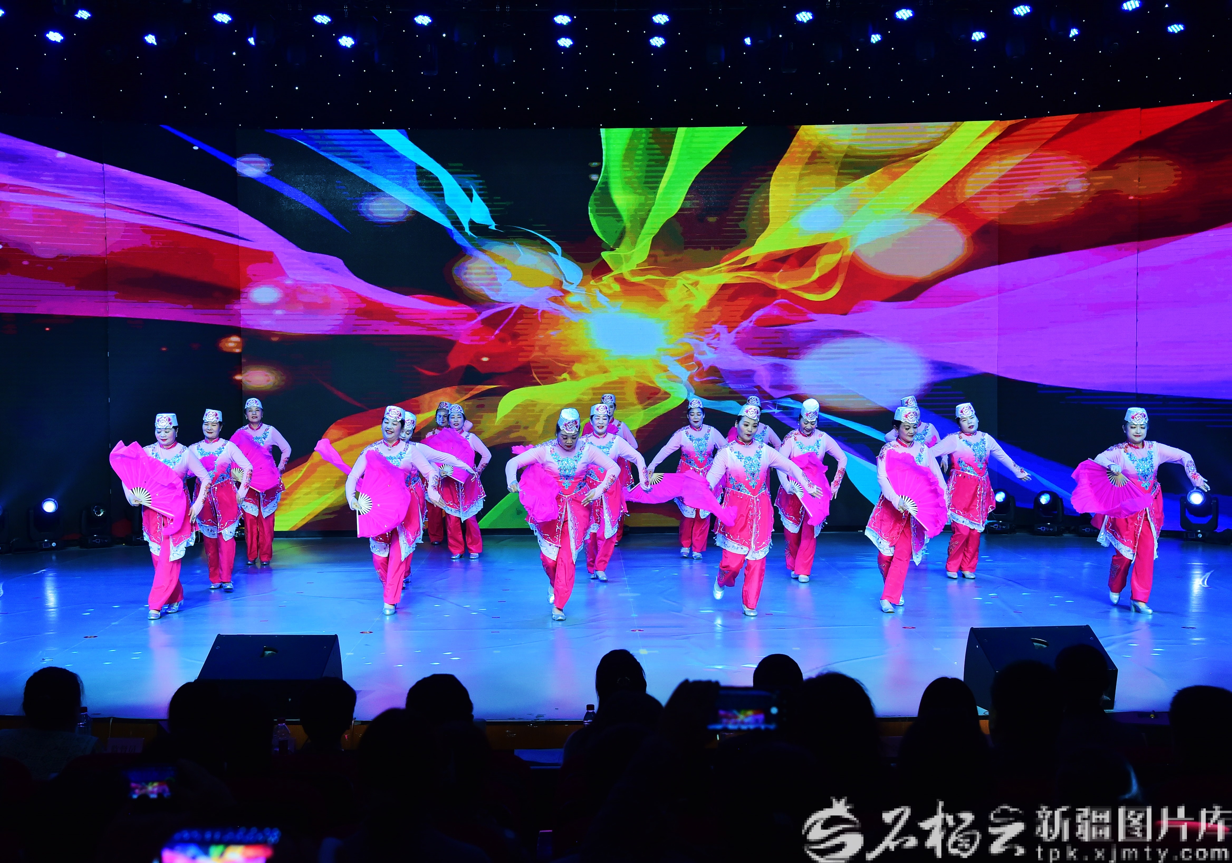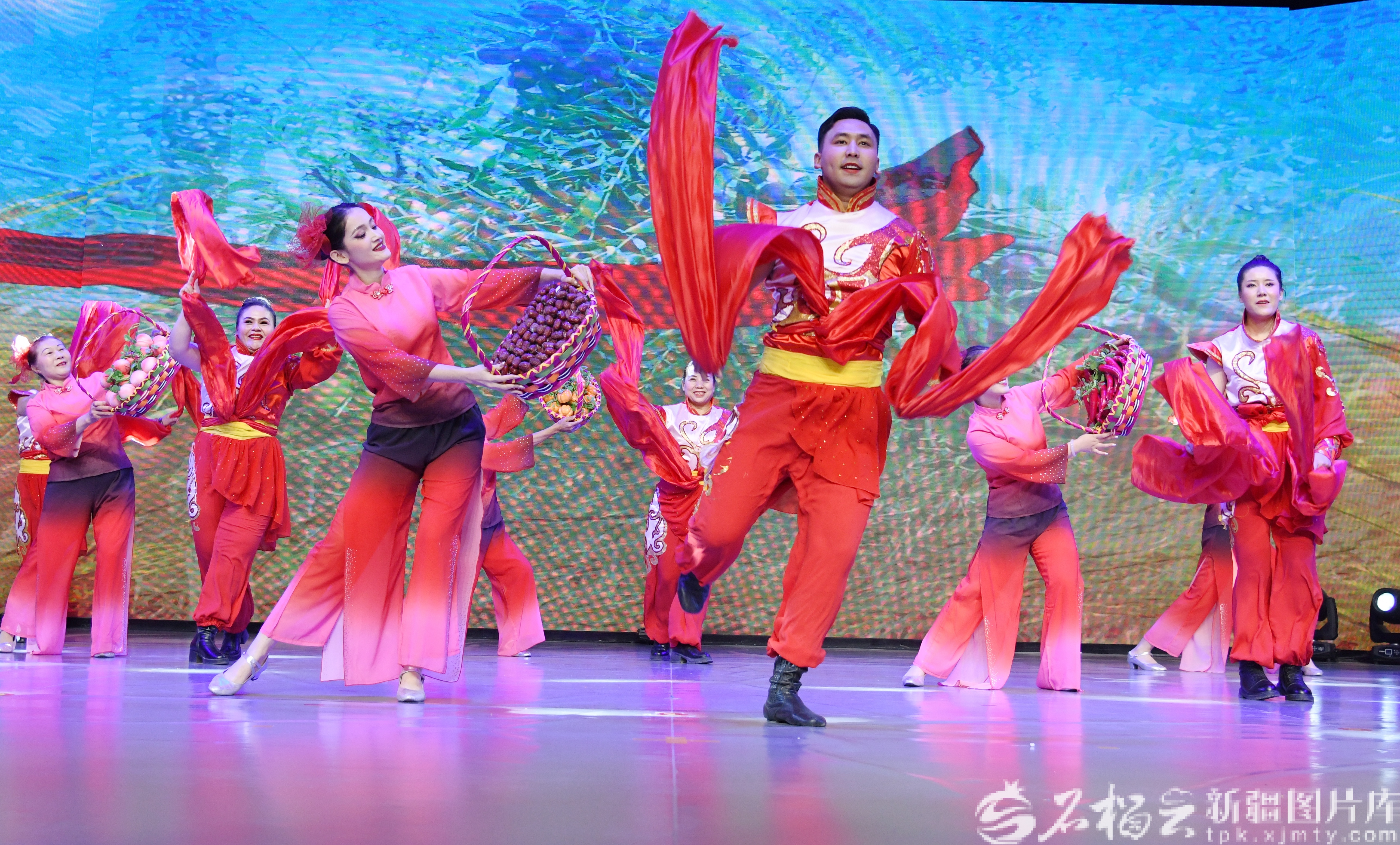 11月28日下午,焉耆回族自治县焉耆镇佳星社区代表队表演的舞蹈《花儿绣语》。