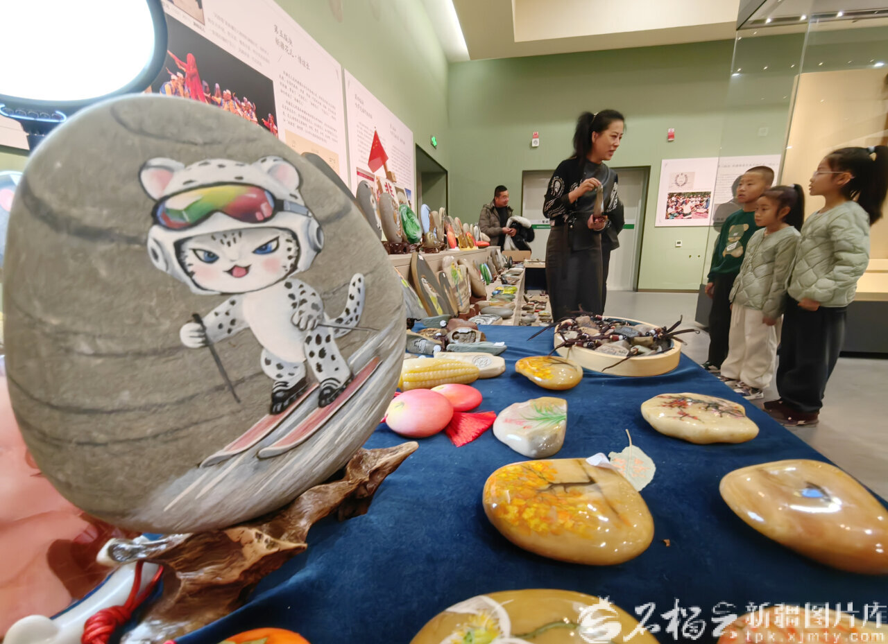 12月1日,在乌鲁木齐市博物馆,一幅幅精美的石头画吸引了孩子们驻足观赏。天山网-新疆日报记者李雄心摄