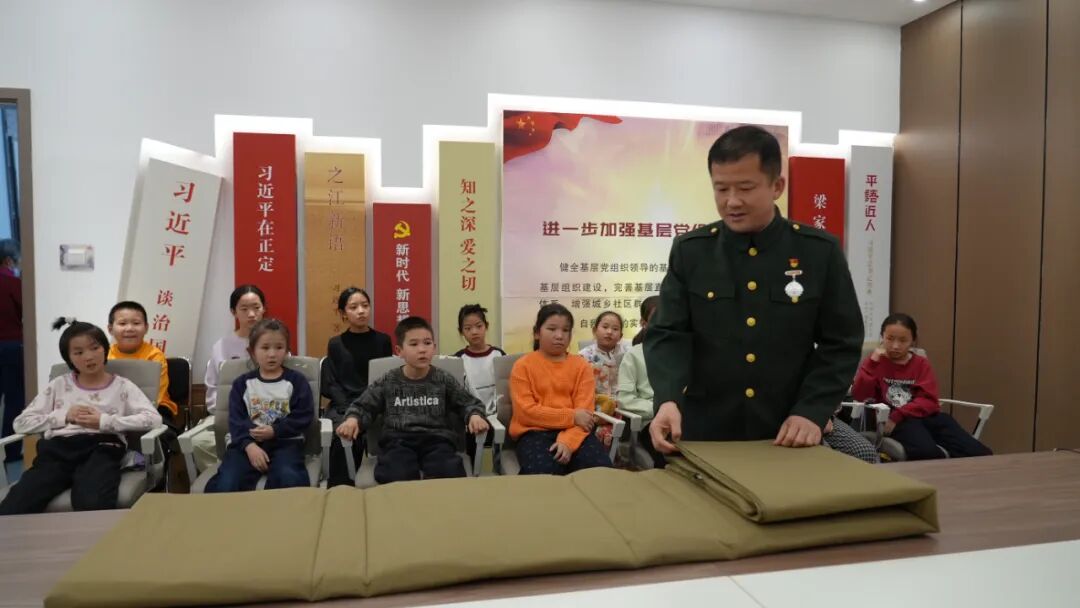 在富蕴县库额尔齐斯镇文化西路社区,退役军人耐心示范“豆腐块”被子的折叠技巧。沙吾列·赛力塔那提摄