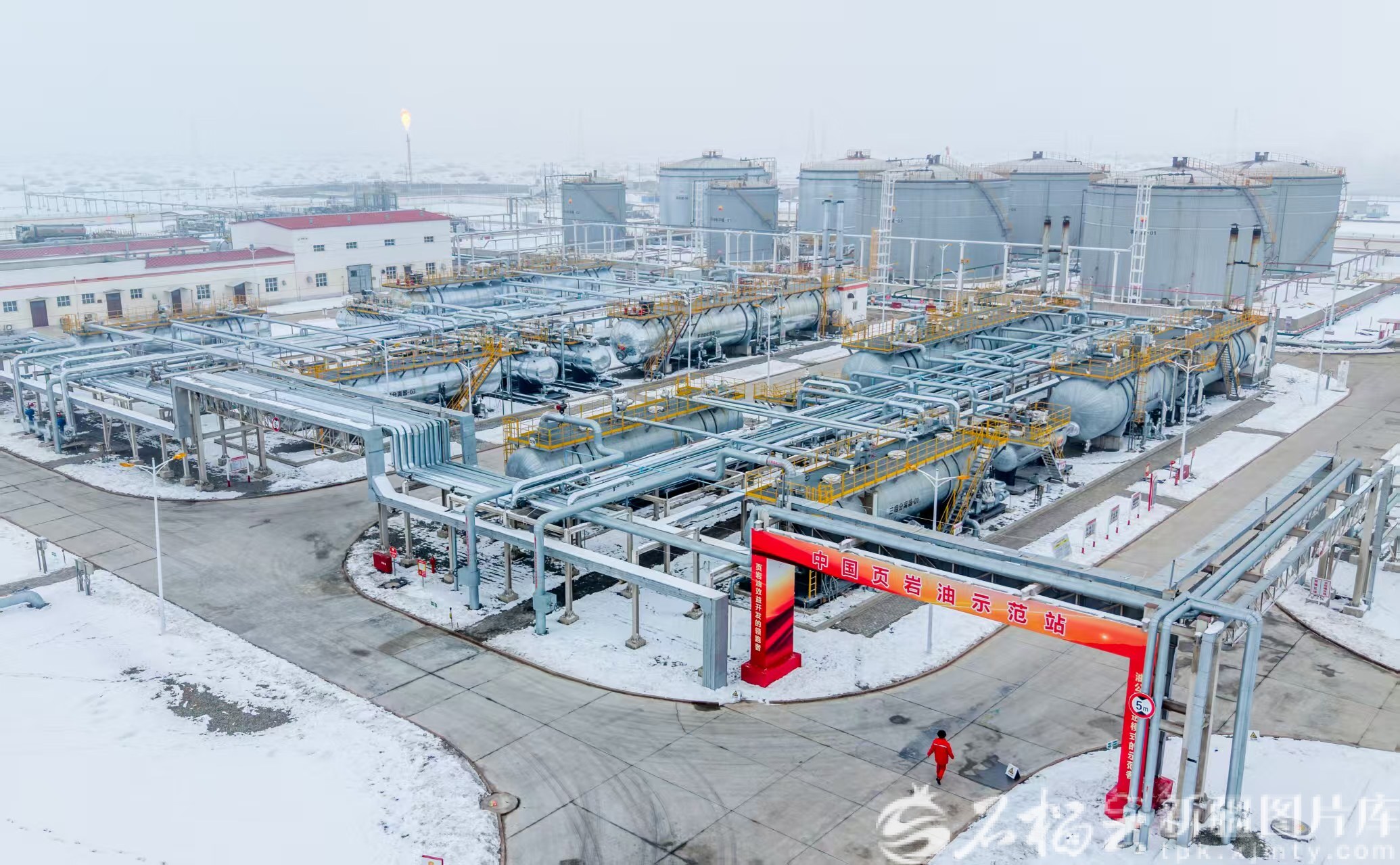 12月9日,新疆吉木萨尔国家级陆相页岩油示范区开采出来的页岩油集输至此处理。张睿 摄