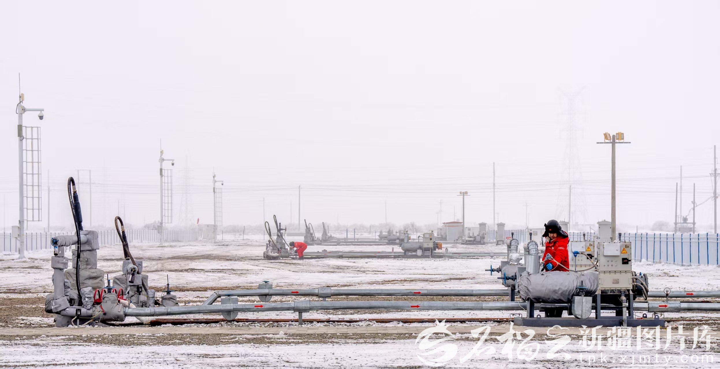 12月8日,新疆油田公司吉庆油田作业区员工在58号平台巡检。张睿摄