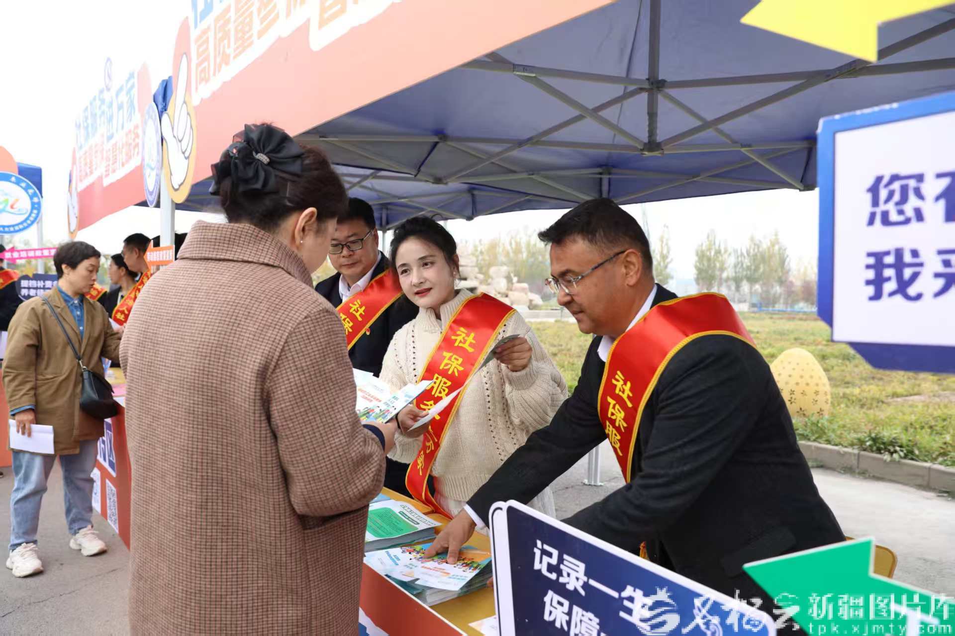 今年10月,自治区“社保服务进万家”活动在伊宁市启动,社保部门工作人员在为参保群众讲解各类社保政策。自治区社会保险中心供图