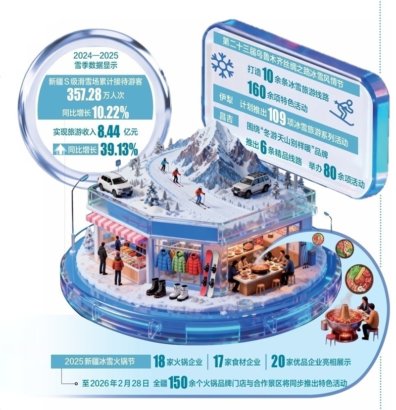 以“冰雪+”为核心的冬季消费活力不断迸发,为新疆冬日经济画卷添上多姿多彩的一笔,也为全年经济持续回升向好注入源源不断的动能。