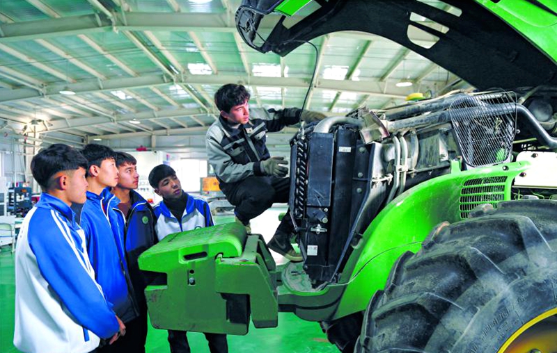 12月22日,阿瓦提县中等职业技术学校学生在学习农机检测与维修知识。该校开设缝纫、烹饪、电焊等11门技能课程,通过专业教师授课,助力学生掌握一门技能,实现就业创业。 □包良廷摄