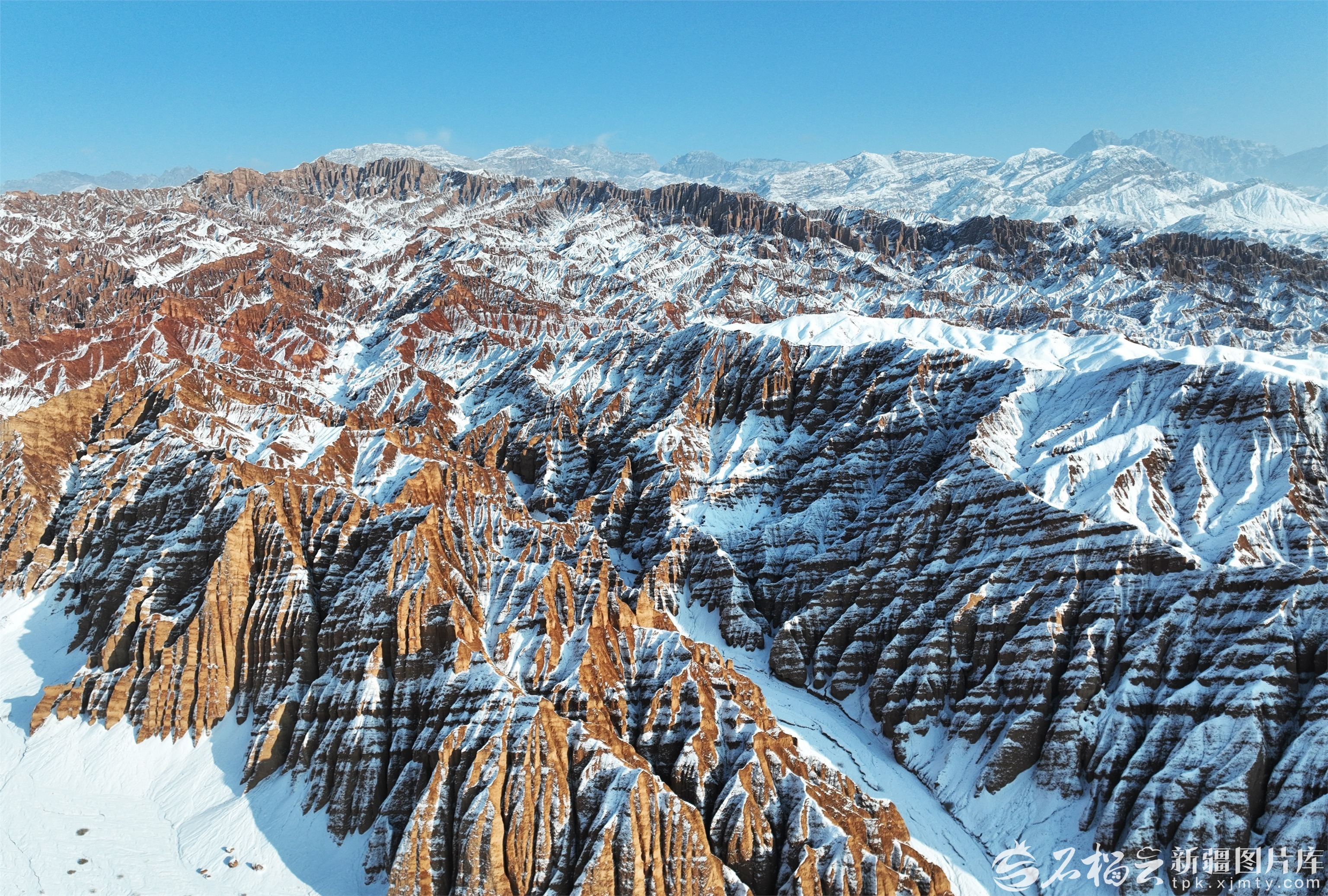 12月25日,火焰山银装素裹,冰与火奇景蔚为壮观。火焰山横卧于吐鲁番盆地,盛夏酷热似火,冬季披上“银装”后,景色独特迷人。 刘健摄
