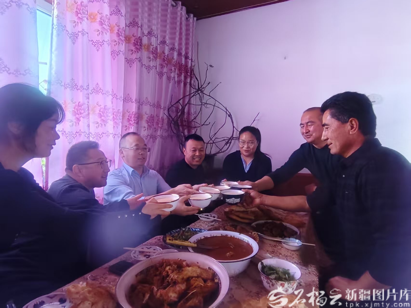 察布查尔锡伯自治县农业农村局办公室干部们正与亲戚们同庆新年的到来。爱德亚尔·加拉尔丁 摄