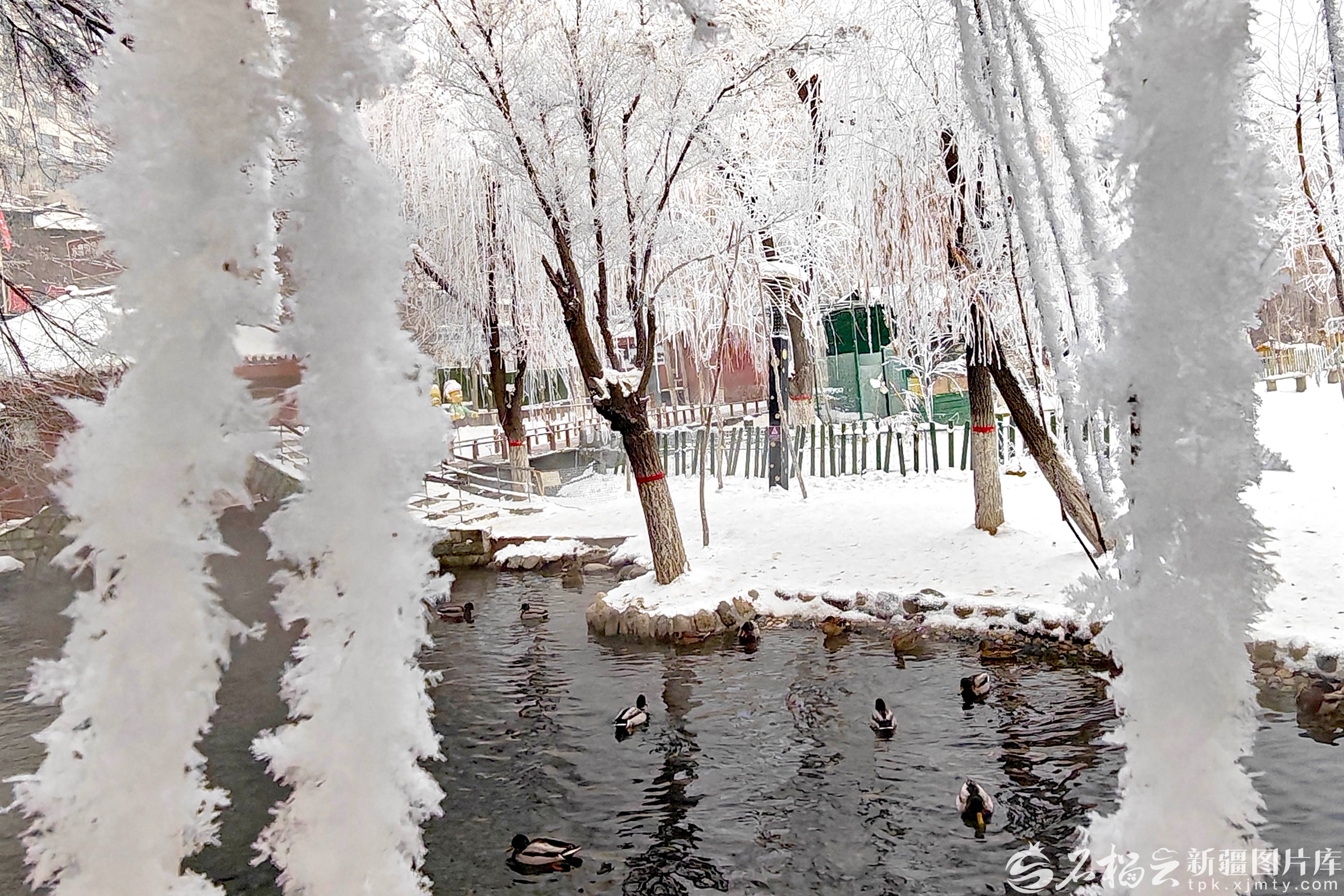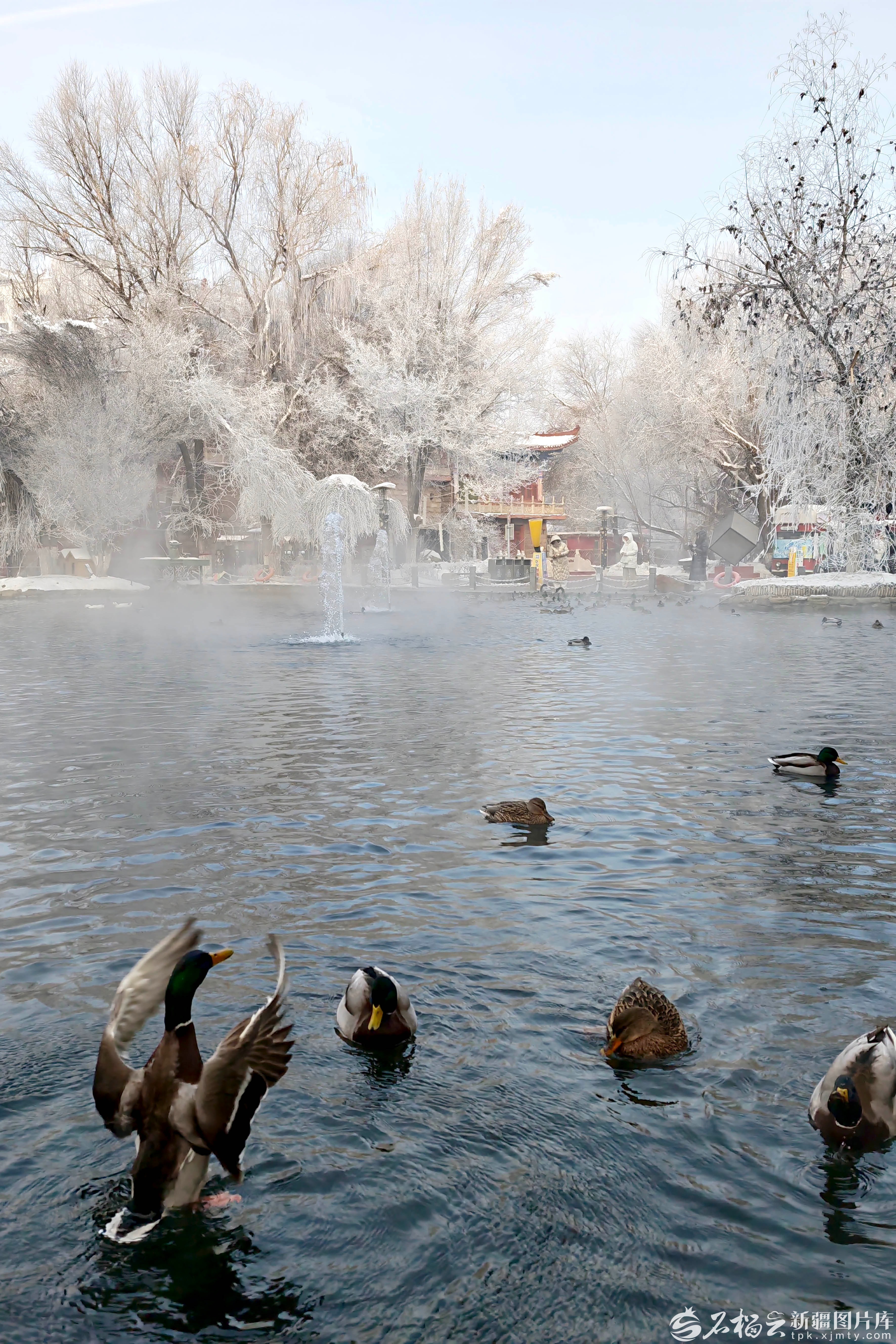 1月5日,野鸭在乌鲁木齐市水磨沟公园的水面上游弋。眼下,水磨沟公园银装素裹,宛如童话世界。尤为独特的是,园内的水磨河冬天不结冰,潺潺流水在低温中升腾起缕缕水雾,绿头鸭、黑天鹅等悠然游弋于清波之上,为静谧的冬景注入勃勃生机。天山网-新疆日报记者蔡增乐摄