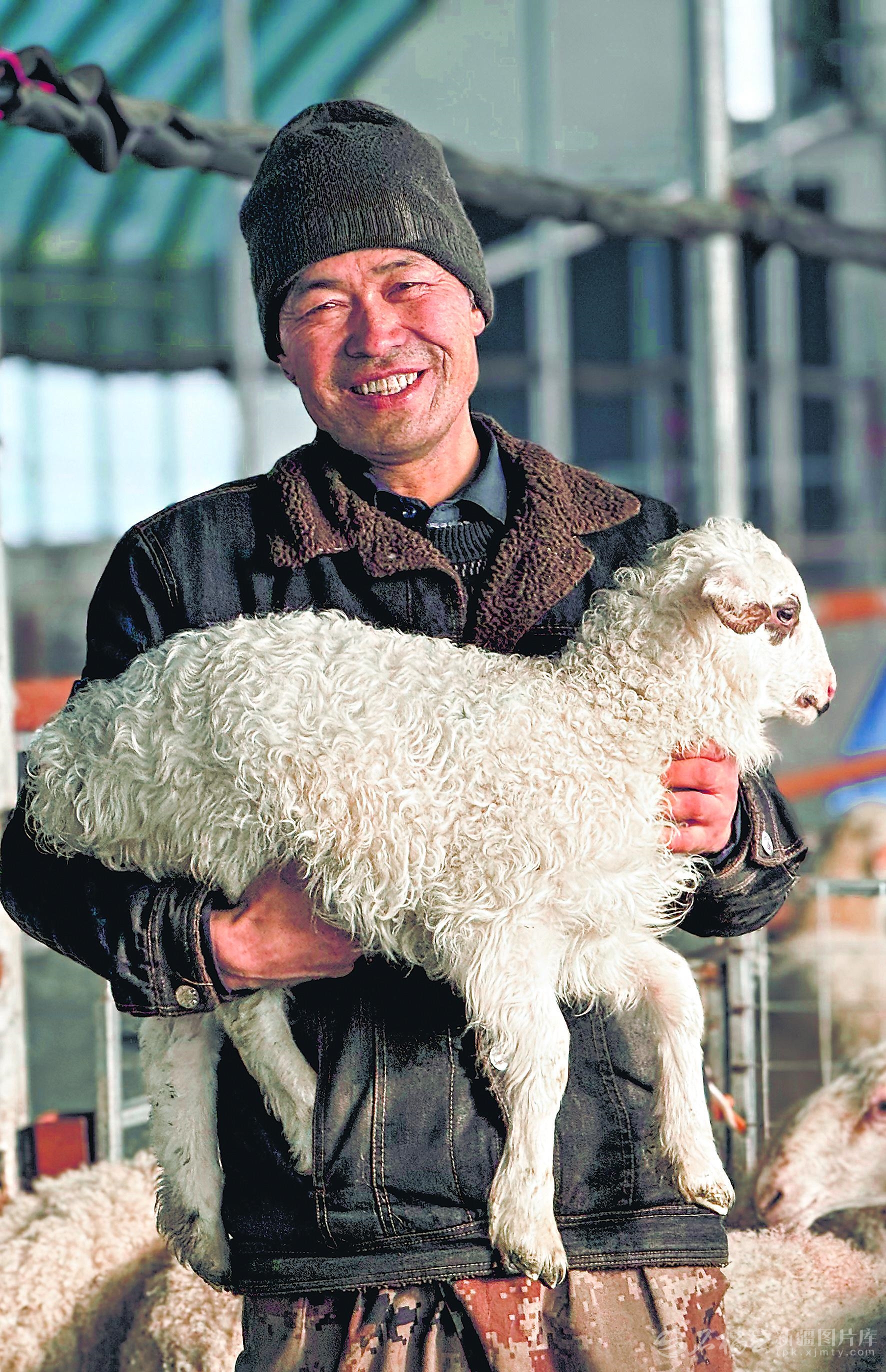 乌苏市塔布勒合特蒙古族乡牧民新村牧民 巴扎尔拜克·叶尔肯别克:希望30多只冬羔快快长大,今年卖个好价钱。□曼朵拉摄